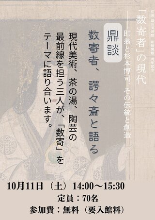 現代美術、茶の湯、陶芸の最前線を担う3人が、「数寄」をテーマに語り合います。