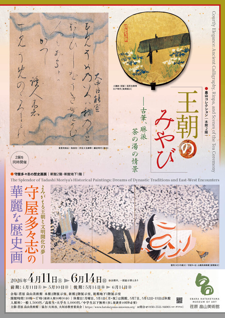 This exhibition presents a carefully selected collection of masterpieces related to court culture from the treasured belongings of our museum's founder, Issey HATAKEYAMA (using the name “Sokuō” for his artistic endeavors, 1881–1971). The elegant ancient calligraphy that conveys the atmosphere of the Heian period, paintings that vividly depict the worlds of tales, and the intricate maki-e lacquerwork that reflects the scenes of waka poetry. These inspired later generations of tea masters, were passed down into the world of the tea ceremony, and were uniquely applied.