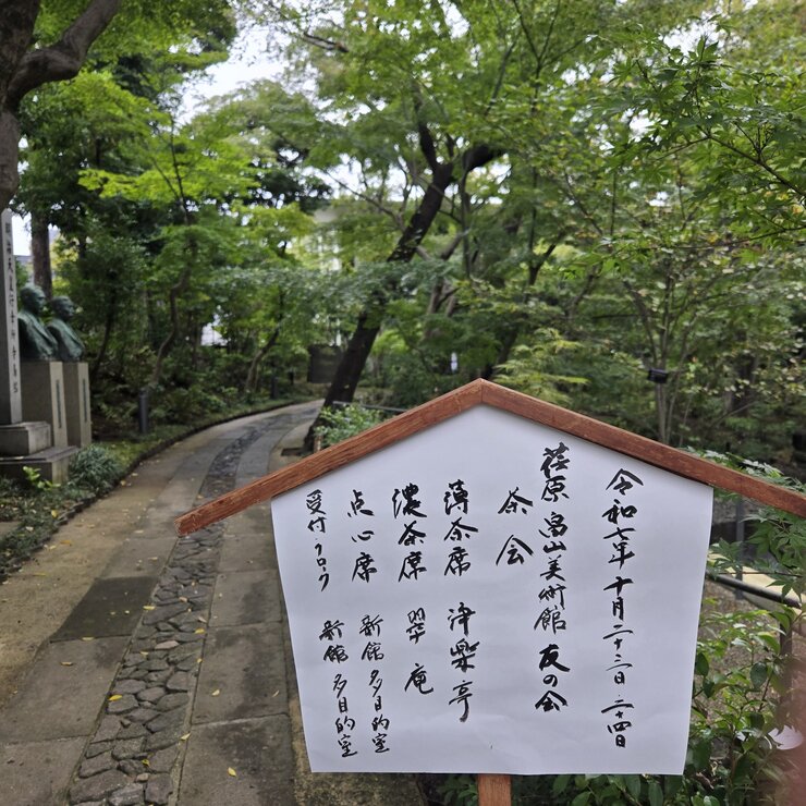 10月23日(木)・24日(金)、苑内の茶室にて秋の友の会茶会を開催いたしました。初日は、秋の気配を感じる穏やかな気候のもと、二日目はあいにくの雨模様となりましたが、しっとりとした景色のなか、多くの会員の皆さまにご参加いただきました。ご参加くださいました皆さま、また開催にご協力いただいた皆さまに、心より御礼申し上げます。